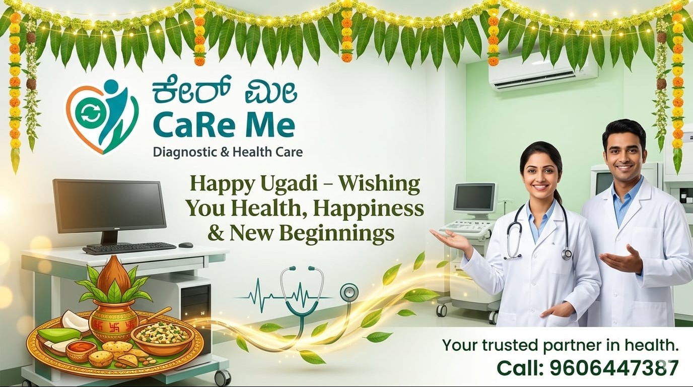 Celebrate the spirit of Ugadi with CaRe Me Diagnostic & Health Care, your trusted partner in wellness.